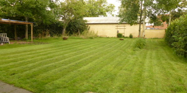 Fælles have og mulighed for parkering langs huset.