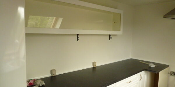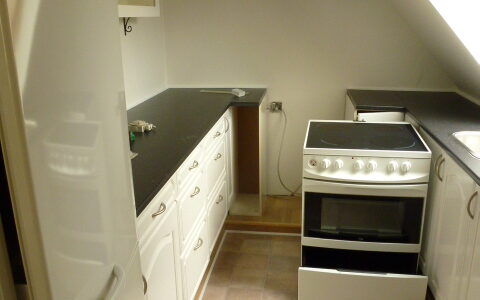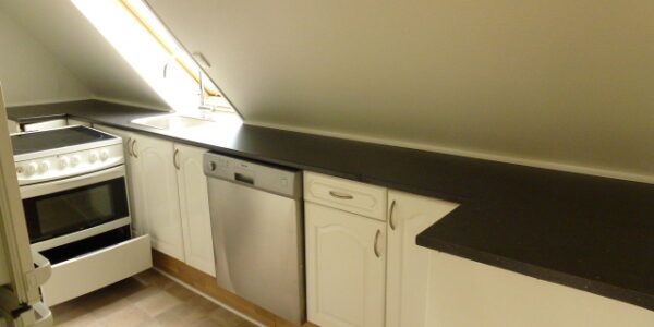 Hårde hvidevarer: Kølefryseskab, opvaskemaskine, komfur og emhætte.